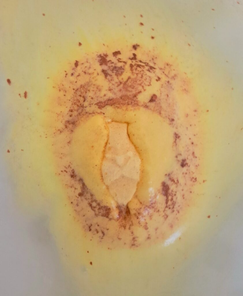 The bath bomb didn’t disappear straight away. It took a good number of minutes for it to disintegrate fully. Fragrance wise I was expecting the smell to come alive once it hit the water. I got the hint of fizzy citrus but it never got strong or developed. Very faint and barely there.